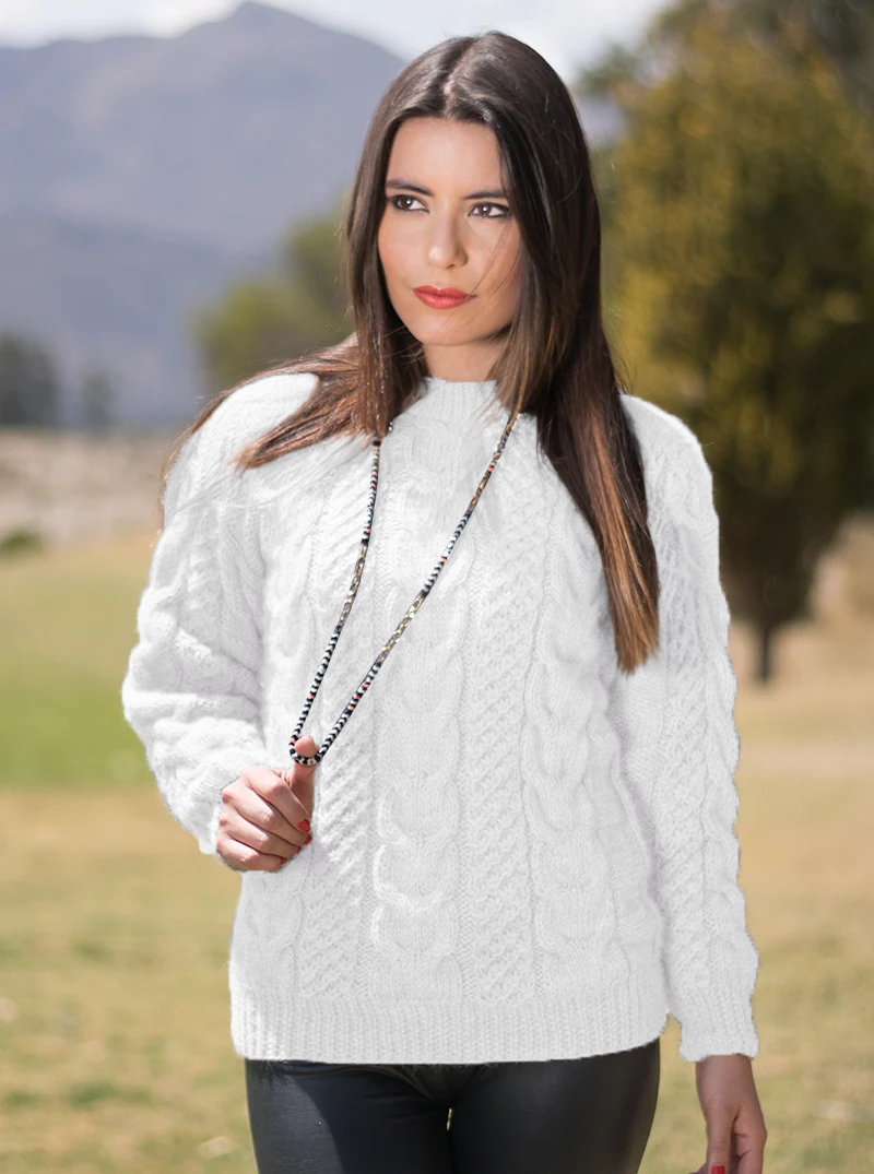 De Dames Trui Alpacawol Handgebreid Ronde Hals biedt natuurlijke warmte en een tijdloze look. Handgebreid alpaca-wol zorgt voor uitzonderlijke zachtheid en comfort, ideaal voor dagelijks gebruik in elk seizoen.