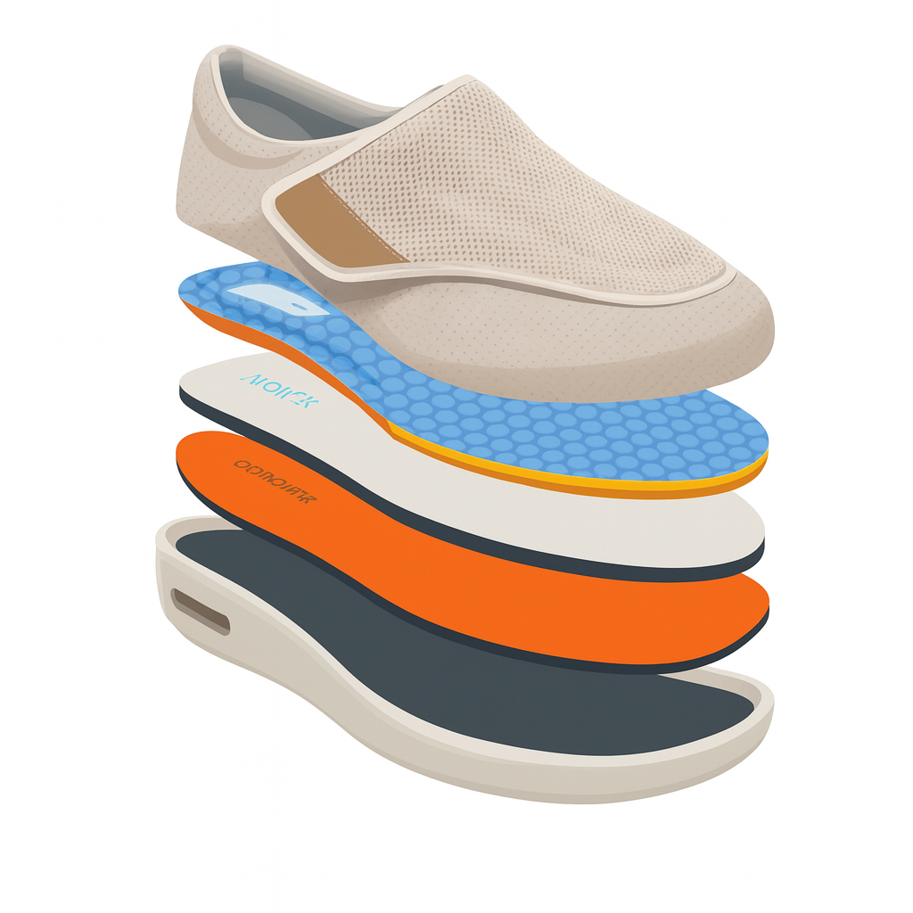✔️ Memory foam zolen → zachte demping en drukverdeling